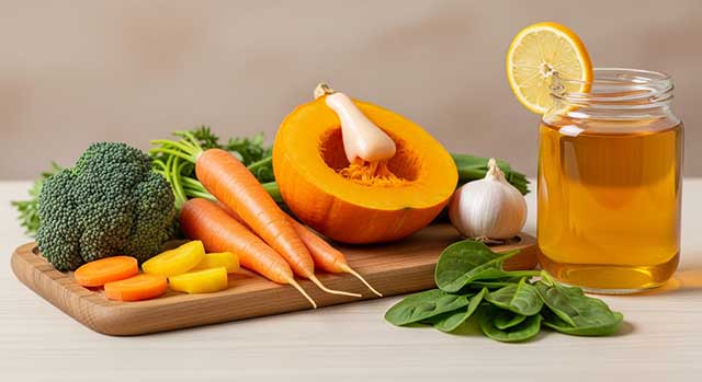 당근, 단호박, 시금치처럼 색깔이 진한 채소에 들어있는 ‘베타카로틴’은 체내에서 비타민 A로 변해 점막의 저항력을 높여줍니다. 특히 당근은 기름에 살짝 볶아 먹을 때 흡수율이 더 좋아지니 참고하세요. 튼튼하게 재생된 조직은 미세먼지를 막아주는 든든한 코점막 보호막이 되어줄 거예요.
