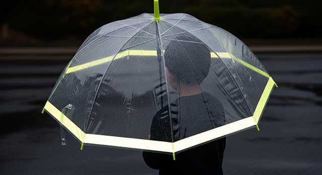 투명한 소재에 고휘도 반사 테이프(리플렉터)가 우산 테두리에 둘러져 있는 투명 어린이 우산을 확인하세요. 자동차 헤드라이트 빛을 반사해 아이의 위치를 운전자에게 즉각 알릴 수 있습니다. 또한, 손잡이나 우산 끝부분에 형광 노란색 등 선명한 컬러가 포인트로 들어가 있다면 비바람 속에서도 우리 아이의 존재감이 훨씬 더 안전하게 돋보일 수 있습니다.