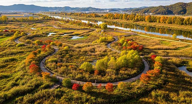 맛집에서 차로 약 15분 거리에 있는 이곳은 겨울 철새들의 쉼터입니다. 고요한 갈대밭 사이를 걷다 보면 일상의 스트레스가 싹 사라지는 기분이 듭니다. 2월의 차분한 분위기를 사진으로 남기기에 더할 나위 없는 장소입니다.