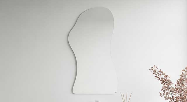 테두리가 없는 거울은 벽면과 경계 없이 자연스럽게 이어지기 때문에 시각적 간섭이 최소화됩니다. 특히 아치형이나 비정형 형태의 노프레임 거울을 선택하면 투박한 사각형 방에 부드러운 곡선미를 더해주어 훨씬 감각적인 분위기를 연출할 수 있습니다. 공간을 차지한다는 느낌 없이 벽면의 일부처럼 녹아드는 것이 노프레임 거울의 가장 큰 장점입니다.