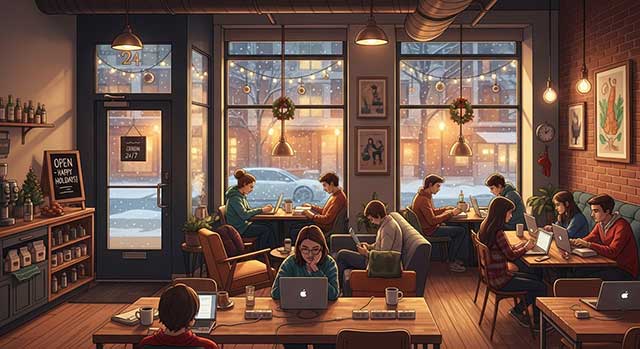 - ‘노 대화(No-Talking)’ 존 운영 카페: 대화보다는 독서와 사색을 권장하는 카페들이 많아졌습니다. 타인의 시선에서 자유로운 완벽한 고립을 선사합니다.