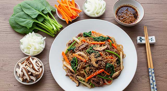 • 원리: 당면 속으로 간이 배어들고, 기름 코팅이 되어 시간이 지나도 면이 불지 않고 윤기가 유지됩니다.