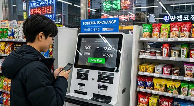 성공적인 한국 여행을 위해 예산을 관리할 때 가장 중요한 것이 환전 수수료입니다. 최근 편의점 키오스크는 은행보다 접근성이 좋으면서도 사설 환전소보다 투명한 환율을 제공합니다.