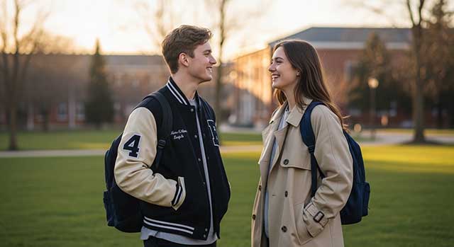 이때 가장 추천하는 아이템은 ‘바시티 자켓(과잠 스타일)’이나’오버핏 트렌치코트’입니다. 특히 바시티 자켓은 활동적이면서도 영(Young)한 느낌을 주어 신입생다움을 가장 잘 표현해 줍니다. 조금 더 성숙한 무드를 원한다면 얇은 셔츠 위에 가벼운 스웨트셔츠(맨투맨)를 입고 아우터를 걸치세요. 더우면 스웨트셔츠를 어깨에 살짝 둘러주는 것만으로도 아주 훌륭한 패션 아이템이 됩니다.